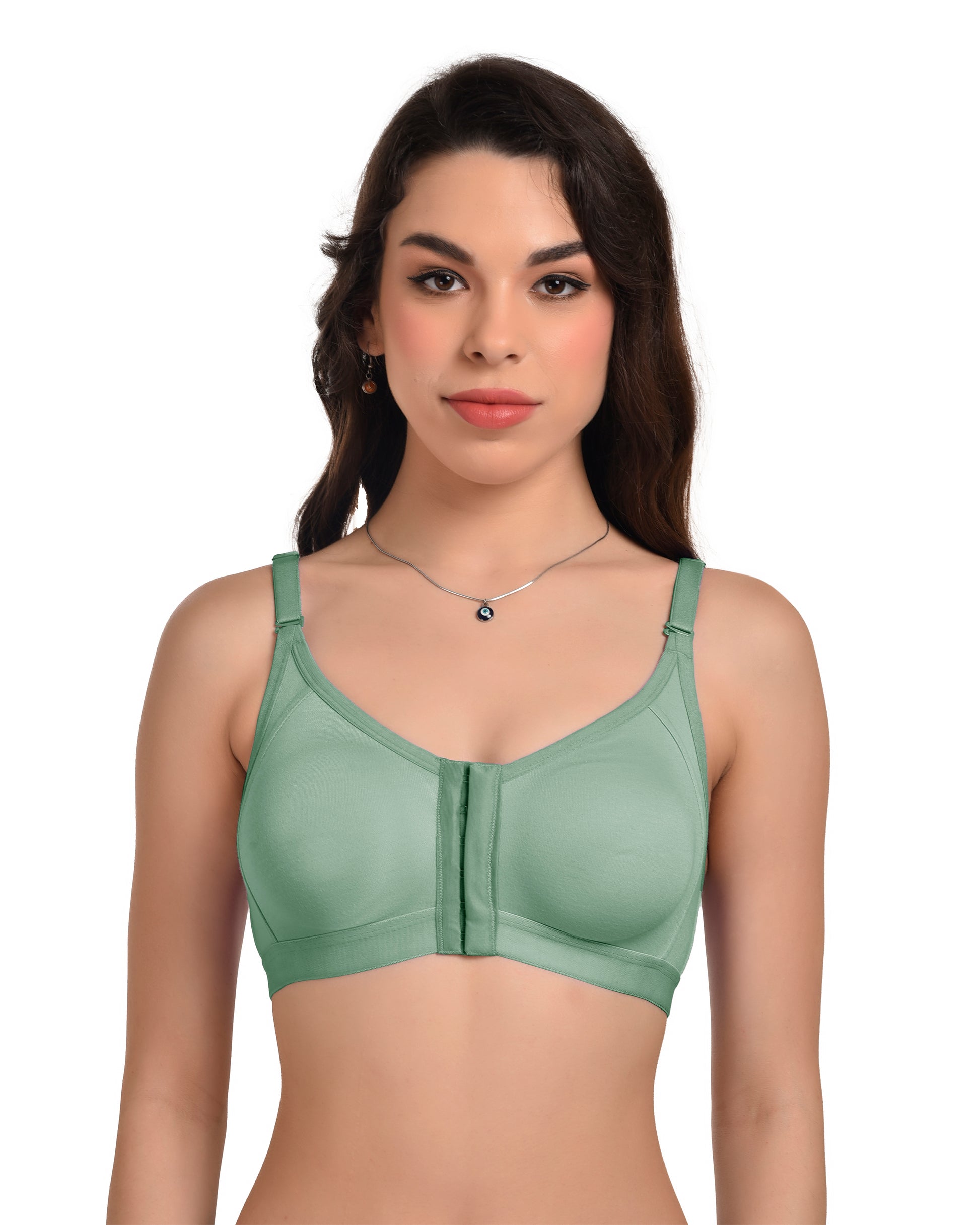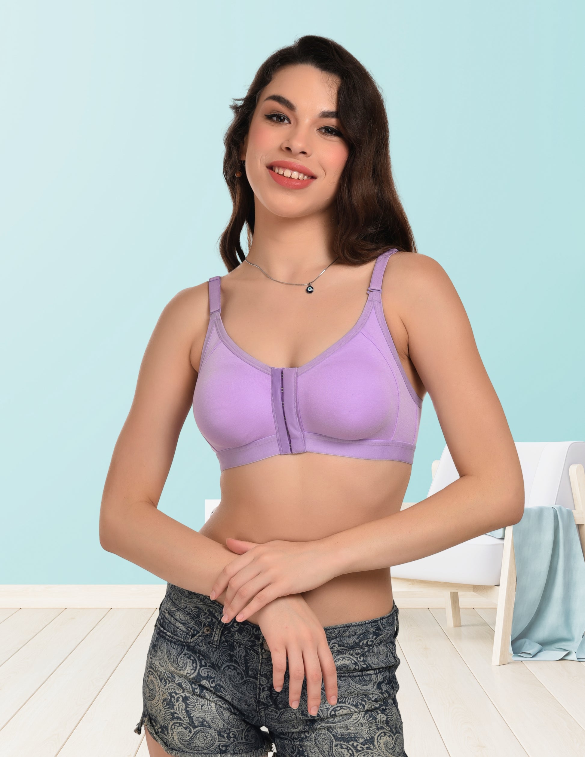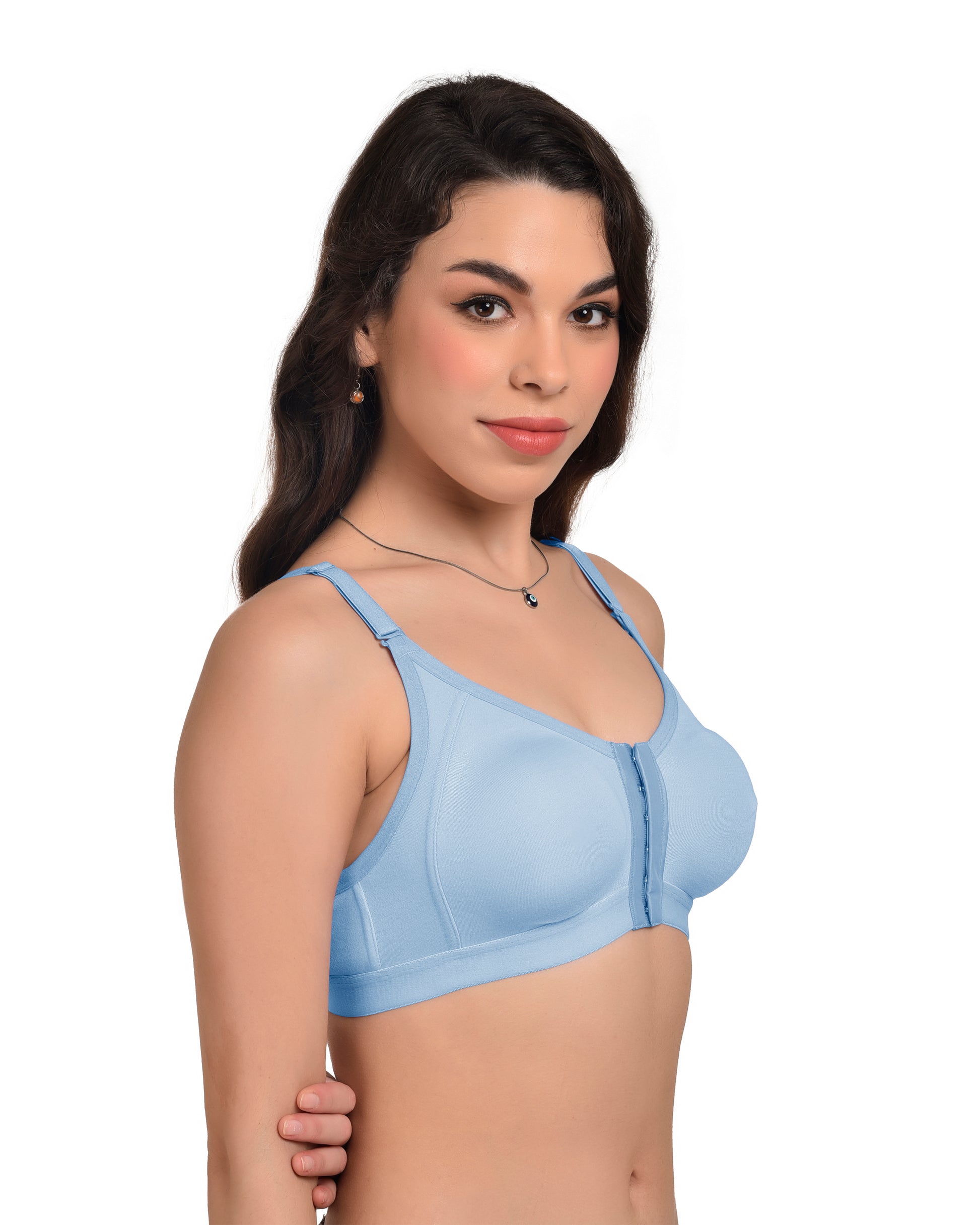 Experience ultimate comfort and convenience with our front open bra! Made from soft, skin-friendly interlock fabric, this bra features a front open design with hook and eye closure (1x6 pinhook) for easy on and off ,full coverage for heavy burst. Available in B and C cup sizes, our seamless cups provide a smooth silhouette and all-day comfort. Perfect for daily wear, this bra combines style, comfort, and practicality. Treat yourself to a bra that's as beautiful as you are!"